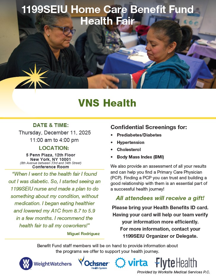 You’re Invited to the 1199SEIU Home Care Benefit Fund Health Fair at 5 Penn Plaza!